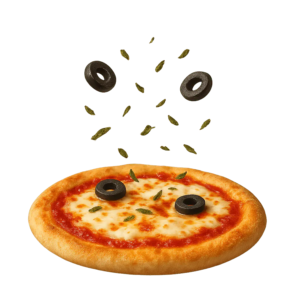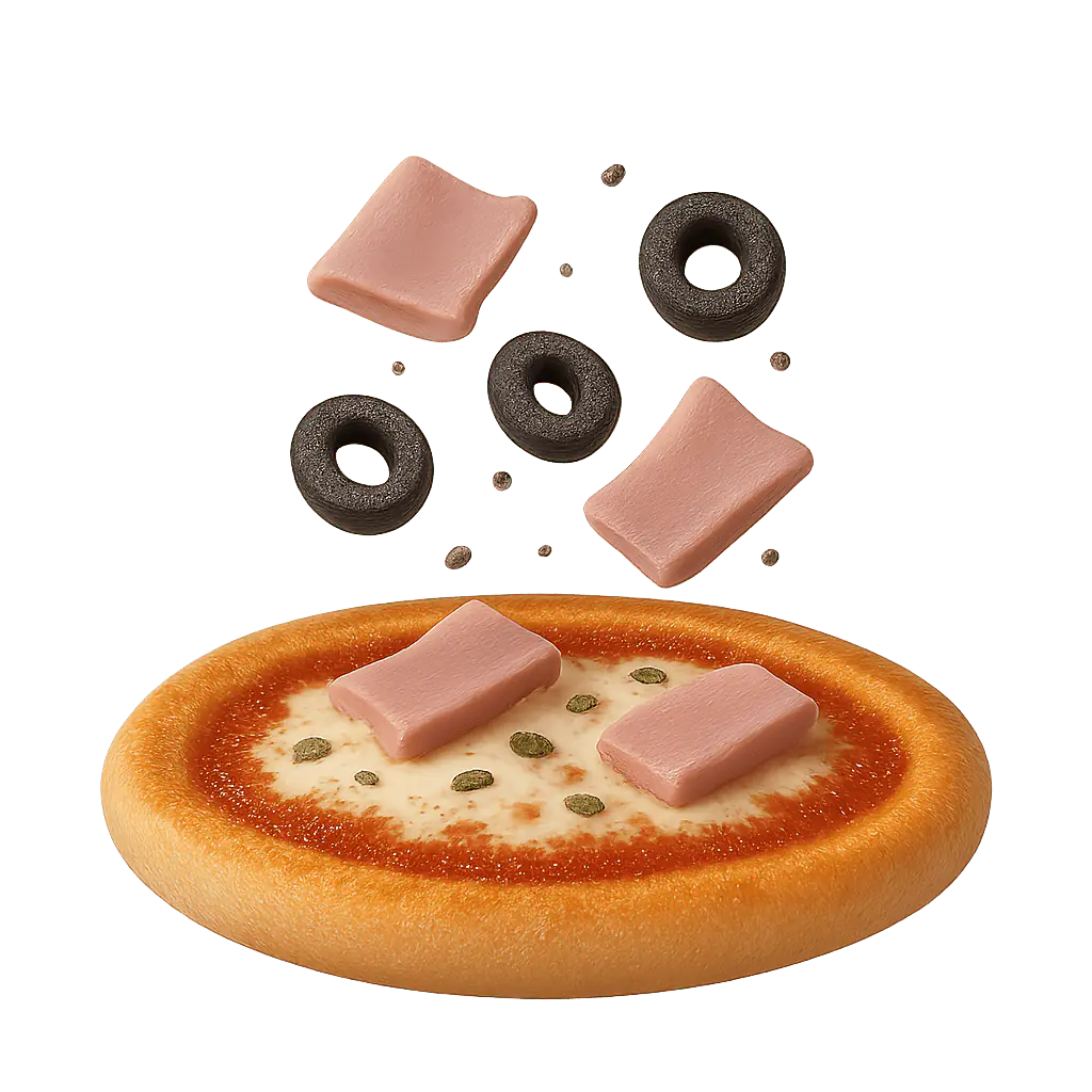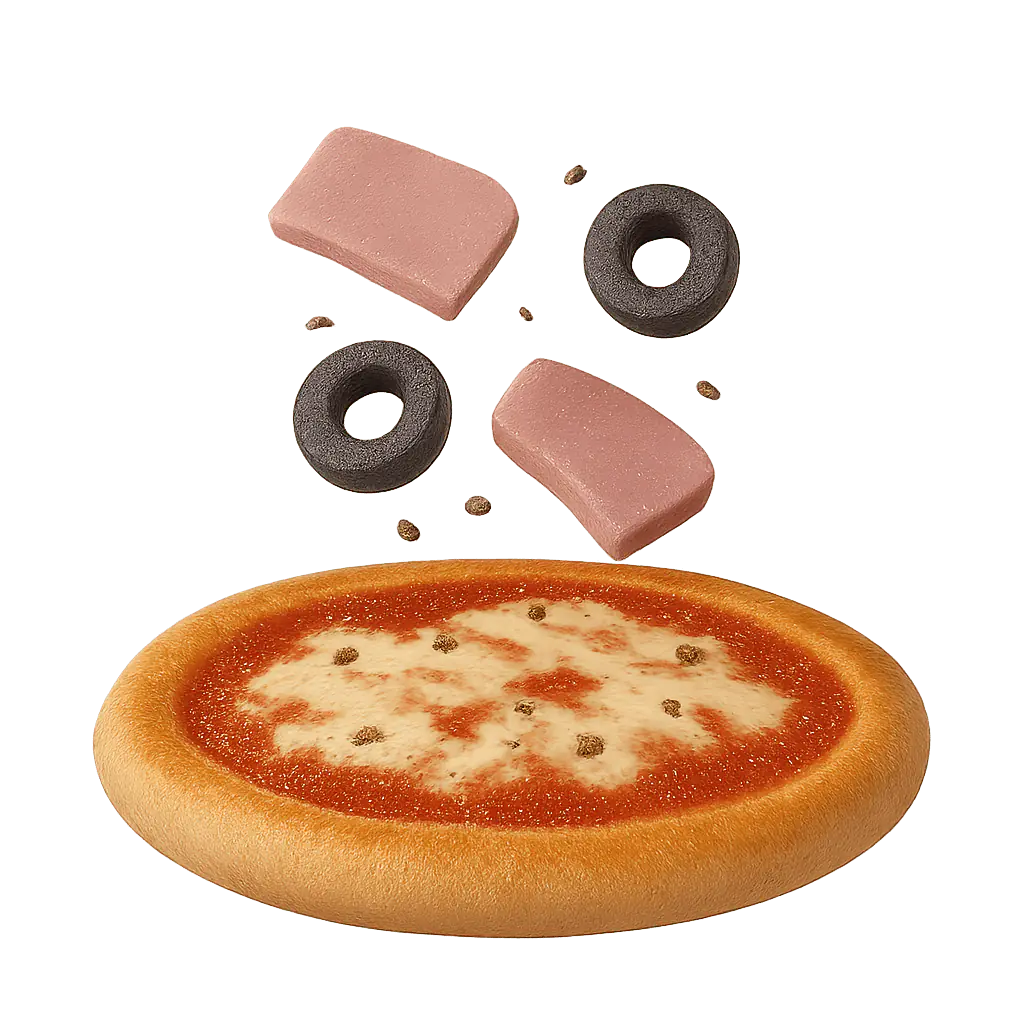 Sauce Tomate, Mozzarella, Jambon dinde, Olive, Origan