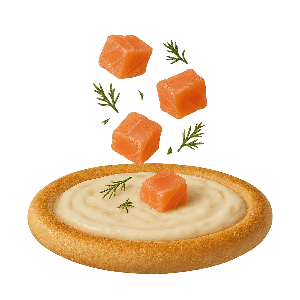 Crème fraîche, Mozzarella, Tartare de saumon, Aneth