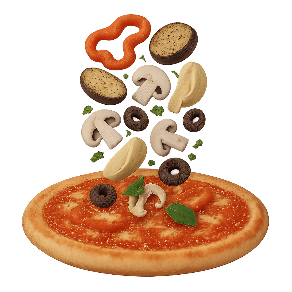 Sauce tomate, Mozzarella, Poivron, Aubergine, Cœur d'artichaut, Champignon, Olive, Persillade